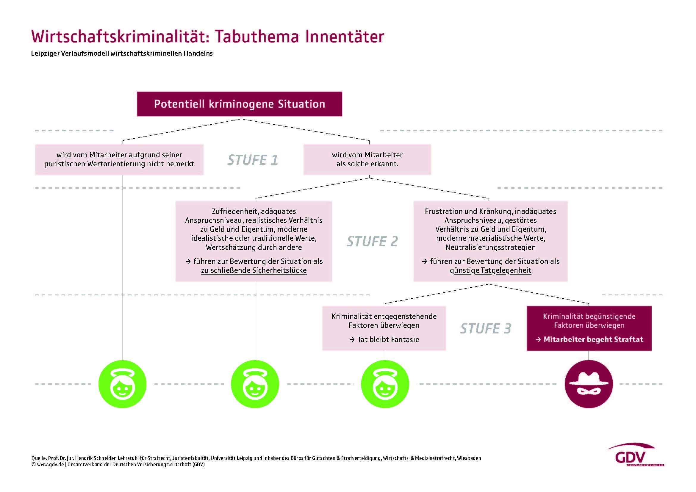 Ausschlaggebend für die meisten Taten sind nach Erkenntnissen des Leipziger Strafrechts-Professors Hendrik Schneider fehlende Sicherheitsmechanismen in den Unternehmen. „Aus der Perspektive der Täter sind Sicherheitslücken günstige Tatgelegenheiten. Insbesondere bei längerer Unternehmenszugehörigkeit kann ein Mitarbeiter der Versuchung der günstigen Gelegenheit erliegen. Bisweilen kommen noch persönliche Risikokonstellationen hinzu, die entsprechende Taten begünstigen. So zum Beispiel, wenn der Täter meint, ‚einen Extrabonus verdient zu haben‘ oder wenn er sich von seinem Chef gekränkt und zurückgesetzt fühlt“, so Schneider.